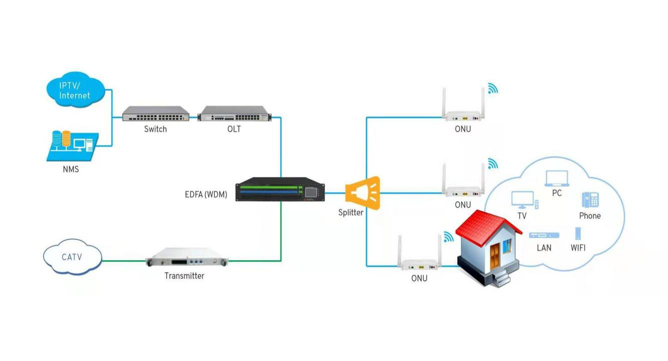 Under the 1:32 splitter, the distance between the OLT and the ONU can reach 20km.
