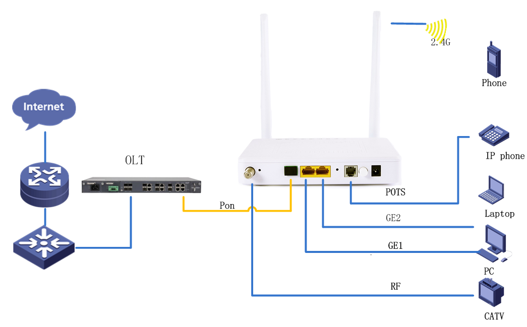 GDONU300-2111 XPON HGU 1GE+1FE+CATV+WIFI(2.4G)+1POTS